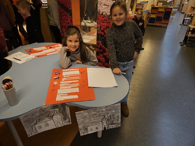 De muurkranten en de houtskooltekeningen werden op maandag 16 december gepresenteerd aan de (groot)ouders die kwamen kijken.