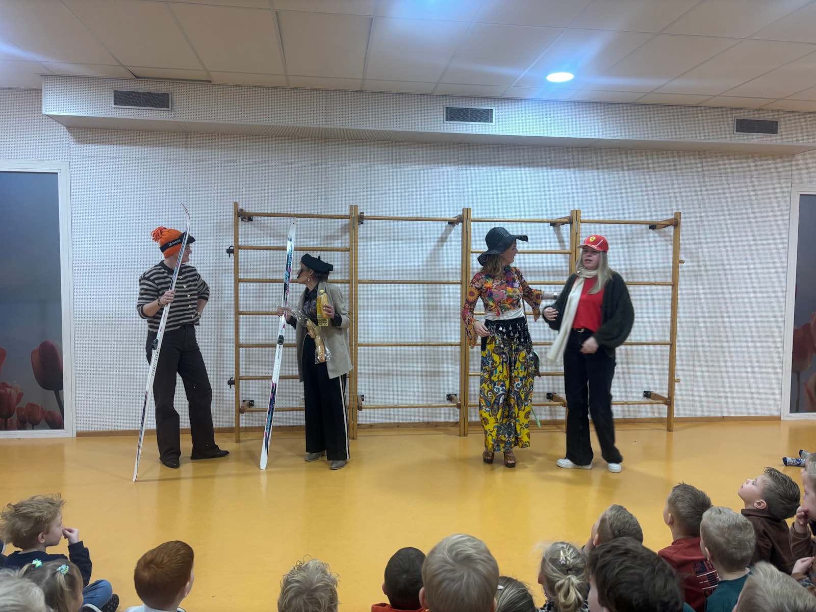 Met een vliegtuig en een paspoort kwamen de juffen één voor één binnen, ieder vanuit een ander land. Juf Atie nam ons mee naar Frankrijk, juf Hester liet ons Spanje zien, juf Karin Oostenrijk en juf Nikita bezocht Italië. Zo reisden we samen de wereld rond, gewoon in de klas!